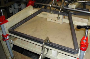 The front end is often considered the most difficult part of the chassis... and with good reason. The side uprights are positioned at a compound angle and this requires a jig to keep the upper and lower rails in correct position. The accuracy of the assembly is influenced by the quality of the compound cuts, the integrity of the jig, and the extent to which the joints are heated when welding.