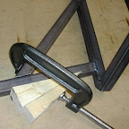 Positioning the front triangulation was also easy work using the adjustable corner clamp for the first tack weld. A slightly less elegant approach was used when a little more force was needed to get things in line. |